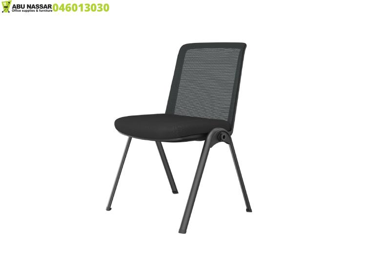 כסא אורח דגם CLEAR גב רשת שחור מושב מרופד בד שחור מתוצרת המותג ANG75