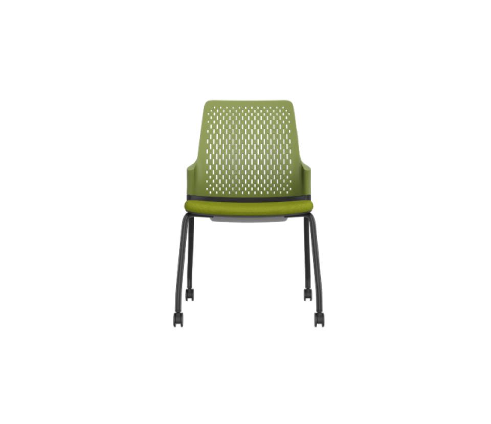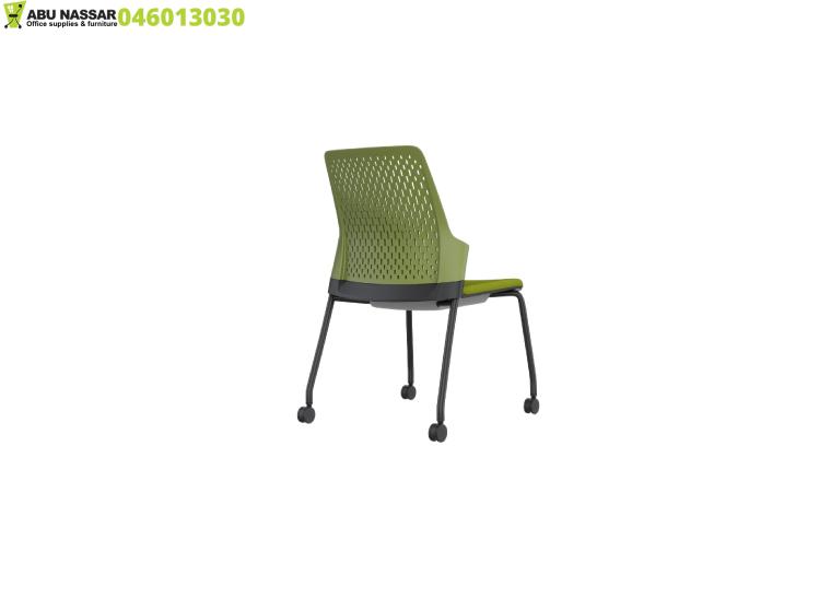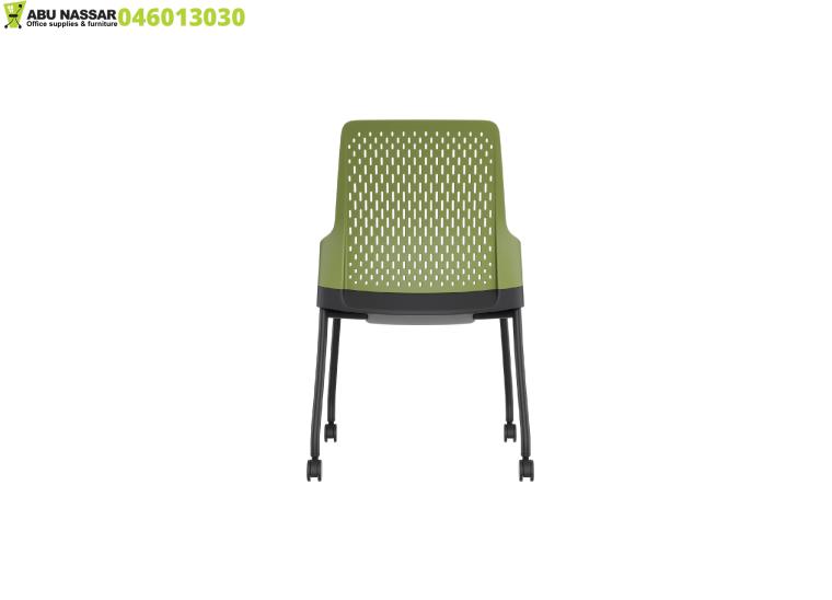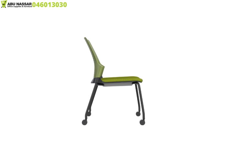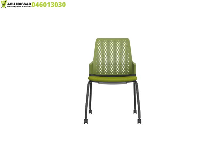 כסא אורח דגם TRIO פלסטיק עם ידיות גב צבע זית מושב מרופד בד שחור +גלגלים מתוצרת המותג ANG75