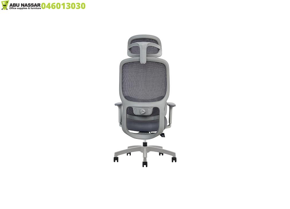 1150660 כסא מנהלים דגם FELLOW-W גב רשת שחור מושב מרופד בד אפור +משענת ראש מתוצרת המותג ANG75