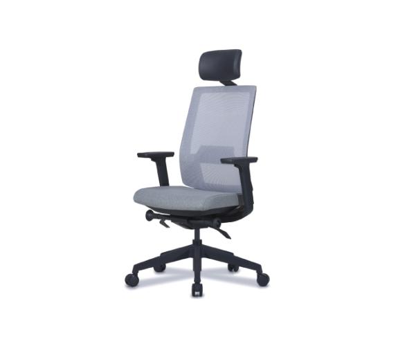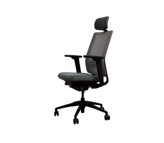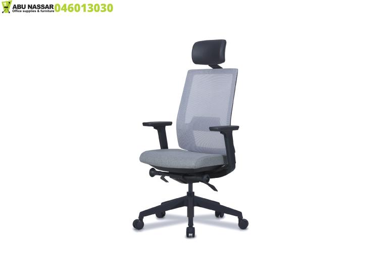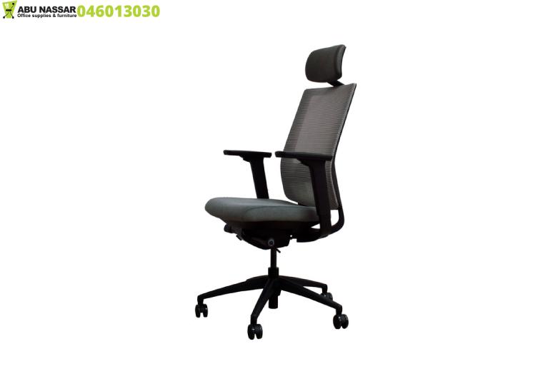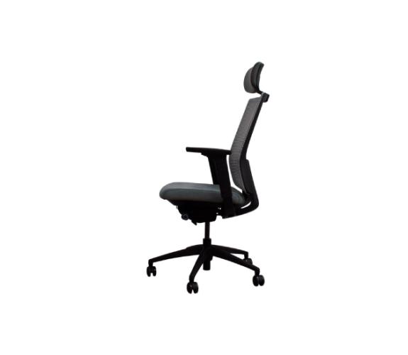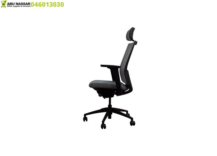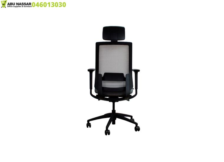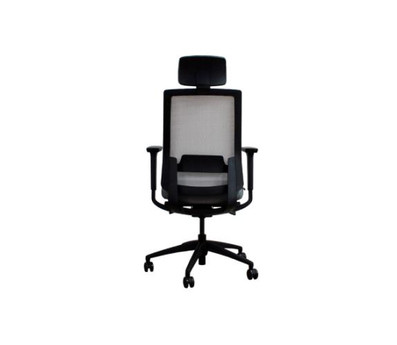 על הגב הרשת של הכסא יושבת משענת ראש הניתנת להתאמה אשר מספקת תמיכה חיונית לראש , בסיס ושלד שחור.
